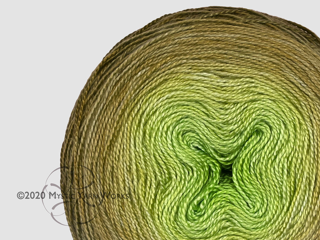 This verdant colorway was created at the request of the winner of a shawl knitting competition, so treat the forest nymph or the lucky 🍀 Irish in you to some sweet green goodness.Â